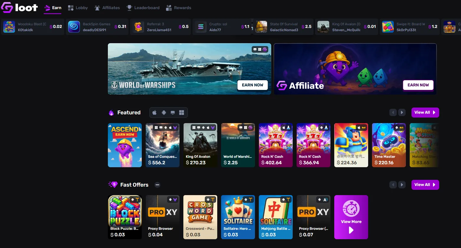 GemsLoot 如同其他GPT網站平台一樣透過 遊戲任務、App 安裝、問卷調查、每日獎勵與推薦分潤,整體介面設計新穎,操作也相當直覺,非常適合新手入門。