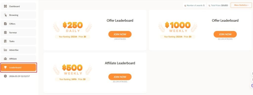 加入 Leaderboard 無需額外註冊,只要完成 CoinPayU 提供的 Offers 任務,你的收益就會自動計入排名。這些任務包括各種問卷、App 安裝及其他優惠活動。